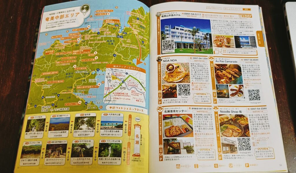 奄美大島の各種名所がモデルコースと合わせて掲載されているのは大変助かります。