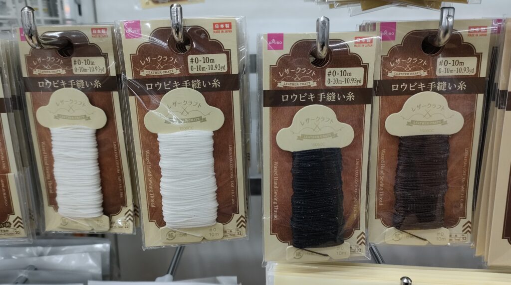 先日、またダイソー アルカキット錦糸町店に行ってみたのですが、レザークラフト用のロウビキ糸のラインナップが3色もあることに気が付きました。
